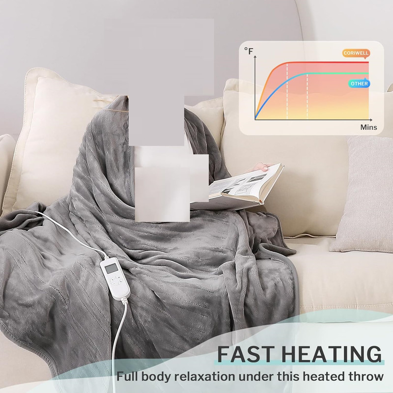 ویژگی های ایمنی - پرتاب پتو با گرمکن Coriwell دارای محافظ ایمنی در برابر گرمای بیش از حد است که به شما امکان می دهد از پتو پرتاب برقی خود در طول شب با خیال راحت استفاده کنید. و پرتاب پتوی برقی ما کاملاً مطابق با CE با مقررات بریتانیا و اروپا است. پتو گرمایی شما را گرم و در عین حال ایمن نگه می دارد.: قبل از برداشتن کنترلر باید منبع تغذیه را قطع کنید)، خشک نکنید، گرما را حفظ کنید. پتو را تمیز کنید تا بتوانید راحت تر از آن استفاده کنید.