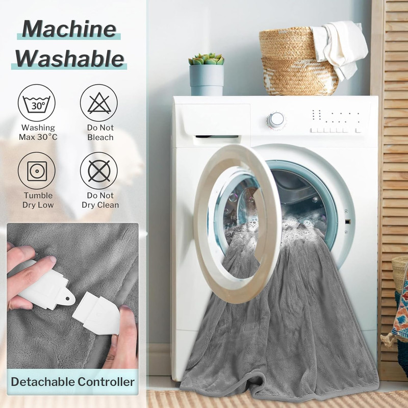 قابل شستشو در ماشین و مراقبت آسان - پرتاب گرم کن الکتریکی قابل شستشو کوریول را می توان با دست یا ماشین در دمای 40 درجه سانتیگراد آب شستشو داد. پتوی حرارتی را تمیز نگه دارید تا بتوانید راحت تر از آن استفاده کنید.