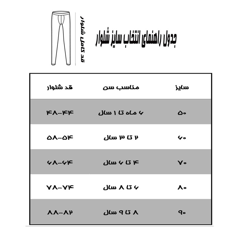 داخل شلوار کرکی هستش و مناسب فصل سرماست . جدول سایز بندی در قسمت تصاویر است .