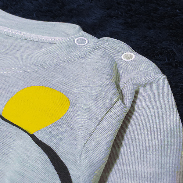 دارای دو دکمه سرشانه برای سهولت در استفاده جنس ملانژ مناسب پاییز و بهار سازگار با پوست کودک مناسب هدیه و سیسمونی رنگ ثابت