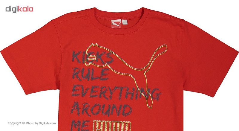- تیشرت پسرانه دارای یقه گرد و آستین کوتاه - قد تا روی باسن - پارچه ساده - دارای نوشته چاپی جلوی تیشرت - مناسب استفاده روزمره