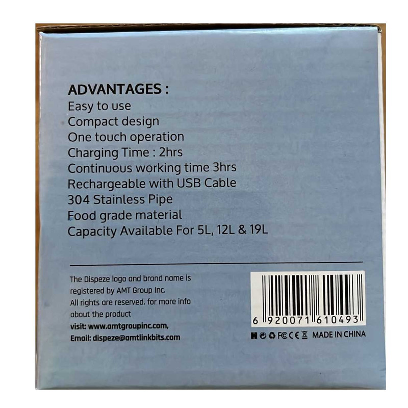 پمپ آب برقی شارژی مدل DZ768 وسیله ای کاربردی است که زندگی را آسان تر و بهتر می کند. قابل استفاده مجدد و 100٪ بی خطر برای نوشیدن آب می باشد. پمپ آب اتوماتیک در وقت و انرژی صرفه جویی می کند. قابل شارژ با USB می باشد. در صورت شارژ کامل می توان از 4 تا 6 گالن آب استفاده کرد. دارای استفاده آسان با فشار دادن سوئیچ دستگاه بدون سر و صدا برای بچه ها و بزرگسالان است. بطری های با ظرفیت 1 تا 5 گالن (4.5 تا 19 لیتر) استفاده می کند. کوچک و سبک بسیار مناسب برای استفاده در خانه یا محل کار و ایده آل برای کمپینگ. آموزش نصب به این صورت است: 1. شلنگ سیلیکونی و لوله استنلس استیل را به پمپ آب برقی شارژی وصل کنید. 2. شلنگ سیلیکونی را داخل گالن آب قرار داده و پمپ آب را بر روی سر گالن قرار دهید. 3. دکمه را فشار دهید تا پمپ آب برقی شارژی روشن شود. 4. مجدد دکمه را فشار دهید تا پمپ آب برقی شارژی خاموش شود. نکات مهم از این قرار است: لطفاً 5 ساعت قبل از استفاده اول پمپ آب برقی شارژی را شارژ کنید. چراغ قرمز هنگام شارژ روشن می شود. پمپ آب برقی شارژی را در آب غوطه ور نکنید. در هنگام شارژ پمپ آب برقی از آن استفاده نکنید. از پمپ آب برقی شارژی را در هنگام خارج بودن از گالن آب و نبودن آب داخل گالن استفاده نکنید. از پمپ آب برقی شارژی برای آب داغ ، الکل ، روغن و سایر مایعات خورنده استفاده نکنید.