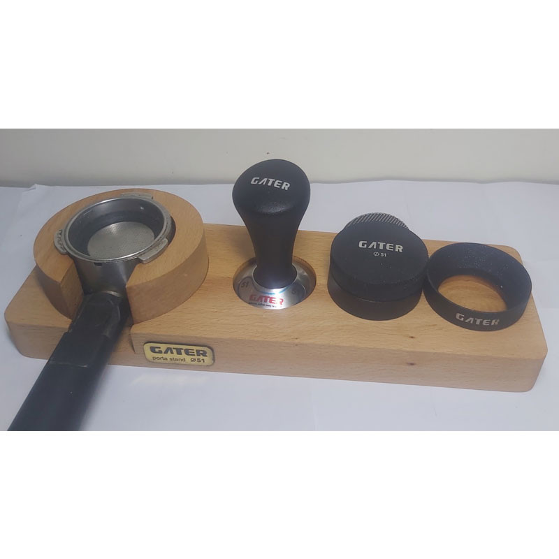 برای تهیه اسپرسو با کیفیت به لوازمی مانند تمپر و لولر و پاک اسکرین و ... کنار دستگاه اسپرسوساز نیاز داریم. ولی نگهداری همه این وسایل کنار دستگاه می تواند کل محیط ما را به هم بریزد. وجود یک استند با قابلیت جا دادن این وسایل در خود کمک زیادی به تمیزی و نظم محیط ما می کند. استند پرتافیلتر گتر مدل مستطیلی سایز 51 میلی متر یک استند شیک و جادار است. این استند برای دستگاه های اسپرسوساز خانگی مناسب است.