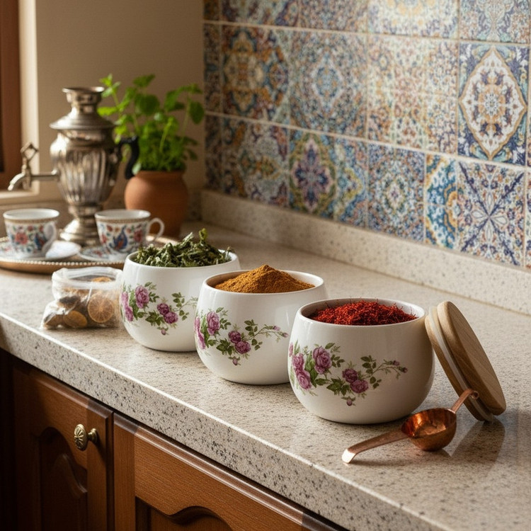 بانکه مدل سرامیکی گل سرخی مجموعه سه عددی