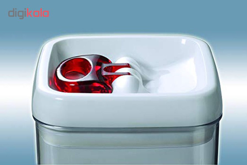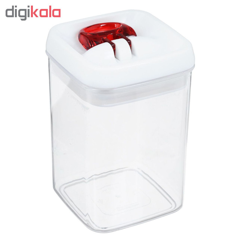 ظرف درب دار با درب راحت باز شو گنجایش 800 سی سی قابلیت نگهداری مایعات ارتفاع ظرف 16 سانتیمتر درب قابل شستشو در ماشین ظرفشویی نیست قطر 10*10 سانتیمتر