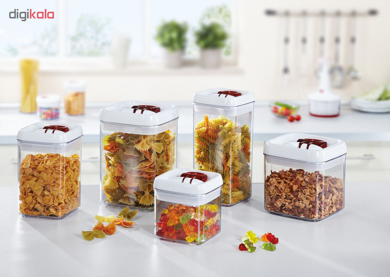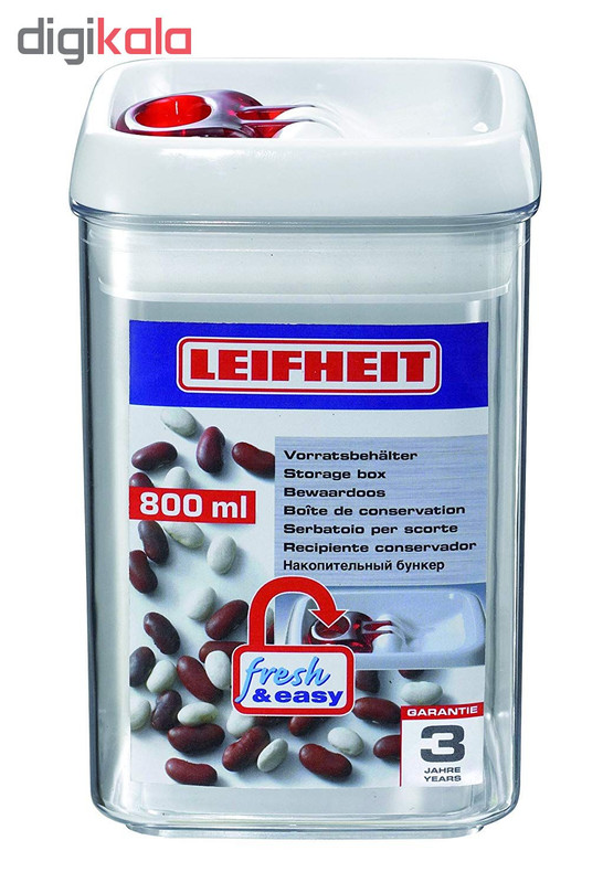 ظرف درب دار با درب راحت باز شو گنجایش 800 سی سی قابلیت نگهداری مایعات ارتفاع ظرف 16 سانتیمتر درب قابل شستشو در ماشین ظرفشویی نیست قطر 10*10 سانتیمتر