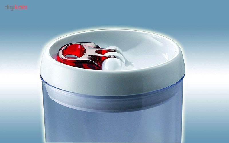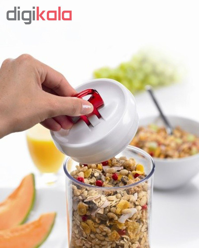 ظرف درب دار با درب راحت باز شو گنجایش 1100 سی سی قابلیت نگهداری مایعات ارتفاع ظرف 20 سانتیمتر درب قابل شستشو در ماشین ظرفشویی نیست قطر 10 سانتیمتر