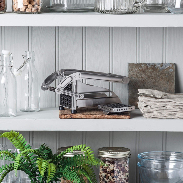 خلالکن دستی «Kilo» (کیلو) مدل «HA12» یکی از کاربردیترین ابزار در آشپزخانه است که به خرد کردن سریعتر و بهتر انواع سبزیجات مانند سیبزمینی، هویج، کاهو و... کمک میکند. این دستگاه پایههای پلاستیکی کوچکی دارد تا با قرار گرفتن روی سطوح مختلف، باعث آسیبدیدگی یا ایجاد خط و خش روی این سطوح نشود. طرز کار این خلالکن بسیار ساده است، سیبزمینی یا هر نوع سبزی دلخواهتان را داخل دستگاه و جلوی قطعه پلاستیکی قرار دهید و بعد دسته را با فشار آرام دست به سمت پایین حرکت دهید تا سبزی به سمت تیغه هدایت شود و خلالشده از سمت دیگر بیرون آید. خلالکن مدل «HA12» دو عدد تیغه با ابعاد متفاوت دارد تا سبزیجات را به اندازهی موردنظرتان خرد کنید. تیغهها بسیار تیز هستند و با سرعت بالا و امنیت بیشتری سبزیجات را خرد میکنند. این تیغهها از استیل ساخته شدهاند و حتی بعد از شستوشوی مکرر نیز زنگ نمیزنند. برای هرکدام از تیغهها یک قطعه پلاستیکی طراحی شده است که سبزیجات را به سمت تیغهها حرکت میدهند و باعث میشوند با اعمال فشار کمتری آنها را خرد کنید. طول کلی این دستگاه 26 سانتیمتر است و به فضای زیادی برای نگهداری نیاز ندارد؛ بنابراین بهآسانی میتوانید آن را داخل کابینتها جا دهید. اگر دوست دارید سبزیجاتی مانند سیبزمینی یکدست و یک اندازه خرد شوند، خلالکن دستی کیلو گزینهای ایدئال برای انجام این کار است.