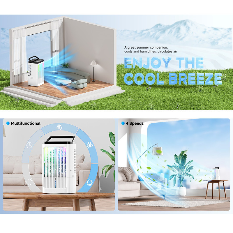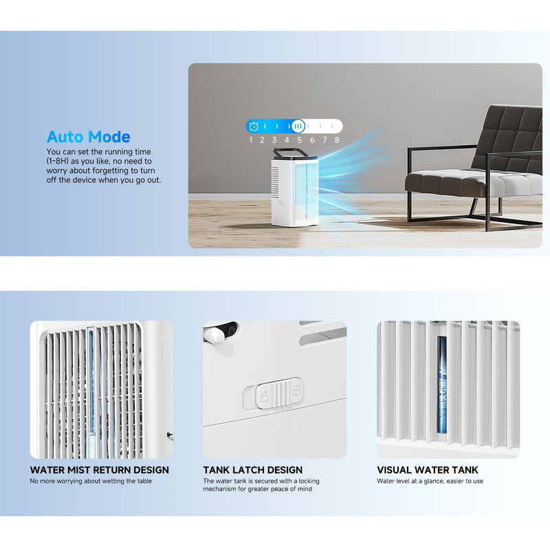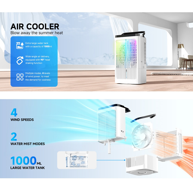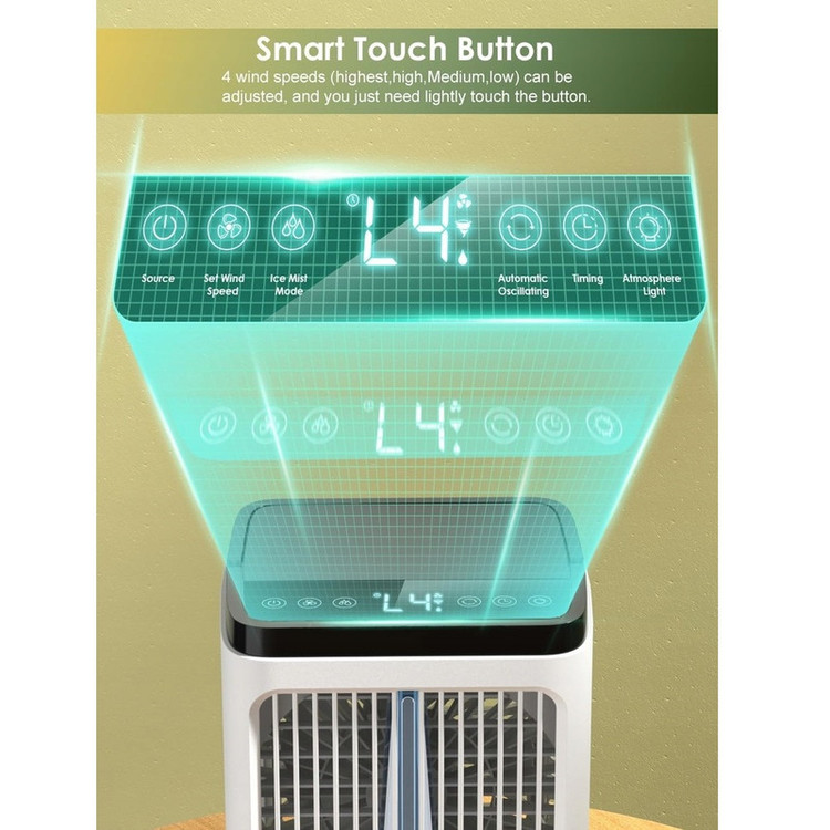 تایمر , قابلیت تنظیم ارتفاع , کابل همراه , محافظ پره , منبع آب , قابلیت تنظیم سرعت , دکمههای لمسی , قابلیت تنظیم زاویه , دستگاه نمایش وضعیت