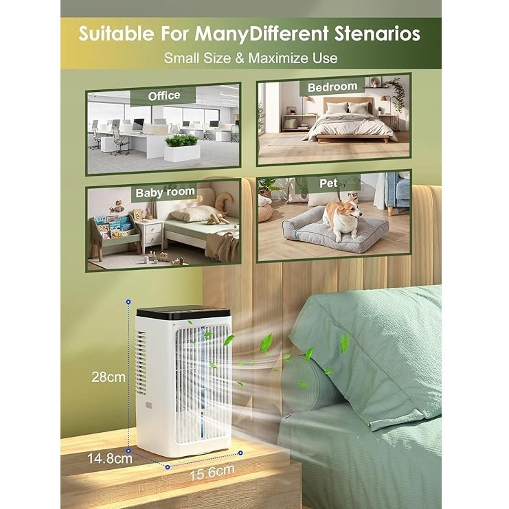 تایمر , قابلیت تنظیم ارتفاع , کابل همراه , محافظ پره , منبع آب , قابلیت تنظیم سرعت , دکمههای لمسی , قابلیت تنظیم زاویه , دستگاه نمایش وضعیت
