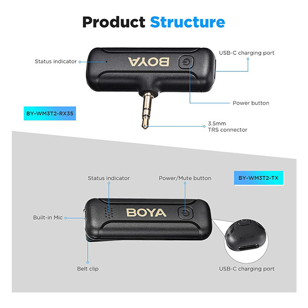 نوع میکروفن: میکروفون یقه ای بی سیم بویا