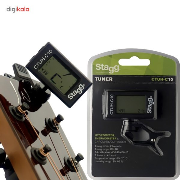 یکی از مهمترین نکات در نگهداری سازهای آکوستیک چوبی مانند گیتار کلاسیک و آکوستیک، کنترل رطوبت و دمای محیط نگهداری این سازهاست. تیونر کلیپسی استگ مدل CTUH-C10 با در اختیار داشتن یک رطوبتسنج و دماسنج دقیق به شما کمک خواهد کرد همیشه از مناسب بودن رطوبت و دمای محیط نگهداری گیتار خود مطمئن باشید. تصمیم هوشمندانهی استگ در گنجاندن این ابزار ضروری داخل یک تیونر کلپیسی کوچک، که همیشه همراه نوازنده است، باعث میشود بدون نیاز به حمل کردن یک ابزار دست و پا گیر اضافه همواره و همهجا قادر به چک کردن دما و رطوبت محیط باشید. و اما CTUH-C10 در مقام تیونر نیز عملکردی عالی دارد. این تیونر کروماتیک کلیپسی لرزشهای صدا را به طور مستقیم از بدنهی ساز حس میکند؛ از این رو برای رسیدن با بازخورد قابل اطمینان نیازی به نواختن بلند نیست. پد کلیپسی CTUH-C10 به شکلی محکم به سردستهی تمام انواع گیتار یا سطوح صاف هر ساز دیگری متصل میشود. علاوه بر حالتهای خودکار برای کوک سازهایی مثل گیتار، باس، ویولن و اوکلله، با حالت کروماتیک و رنج گستردهی فرکانس از نت B0 تا B7 قادر خواهید بود بسیاری از سازهای دیگر را نیز کوک کنید. این تیونر مترونوم کلیپسی به یک صفحه نمایش شفاف LCD با نور پسزمینهی دورنگ هم مجهز است. مقر اصلی استگ در بلژیک قرار دارد و از بدو تاسیس در سال 1995 میلادی تا کنون فعالیت خود را در زمینهی تولید انواع بسیار متنوعی از اداوت موسیقی و لوازم جانبی گسترش داده است. هدف این برند همواره عرضهی محصولاتی با کیفیت بالا و قیمت پایین، برای پاسخ به نیاز طیف وسیعی از نوازندگان و موسیقیدانان در سطوح مختلف از مبتدی تا حرفهای است. به لطف شبکهی توزیع بسیار گسترده، محصولات استگ علاوه بر اروپا تقریبا در تمام نقاط دیگر دنیا نیز در دسترس علاقهمندان به موسیقی قرار دارد. فروش جهانی محصولات استگ چنان رشدی داشته که در حال حاضر بخش عمدهی درآمد و رشد بیسابقهی گروه از آن استگ است. استگ گسترهی بسیار متنوعی از محصولات را با کیفیت بالا و قیمت مناسب عرضه کرده است که برای سختگیرانهترین سلیقهها نیز پاسخ مناسب را خواهد داشت.